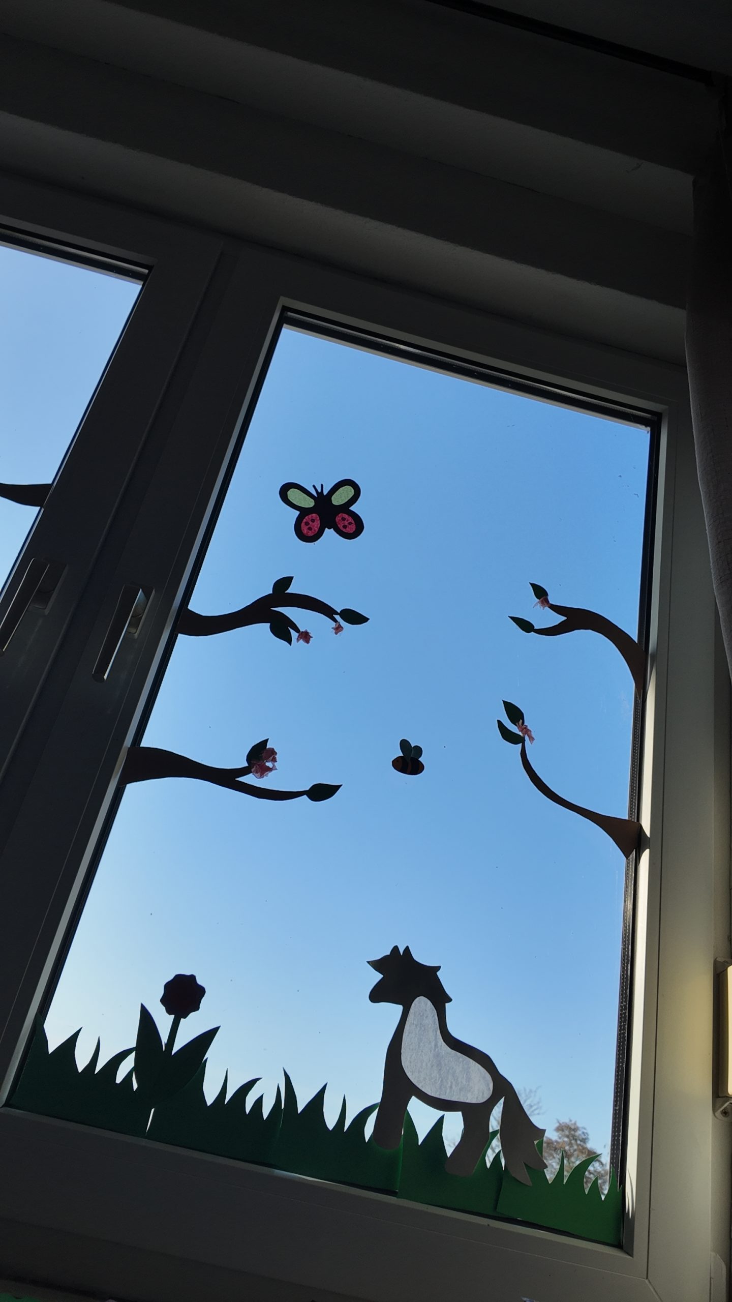Im Gegensatz zu Wanddeko leben Fensterbilder vom Licht. Transparentes Papier beginnt zu leuchten, Farben wirken intensiver und das Motiv verändert sich je nach Tageszeit.