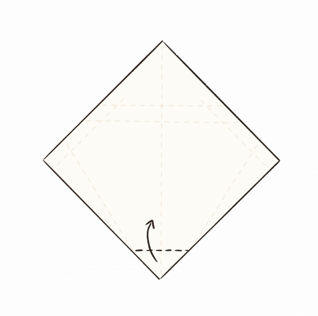 2.) Falte die untere Ecke entlang der Falzlinie nach oben.