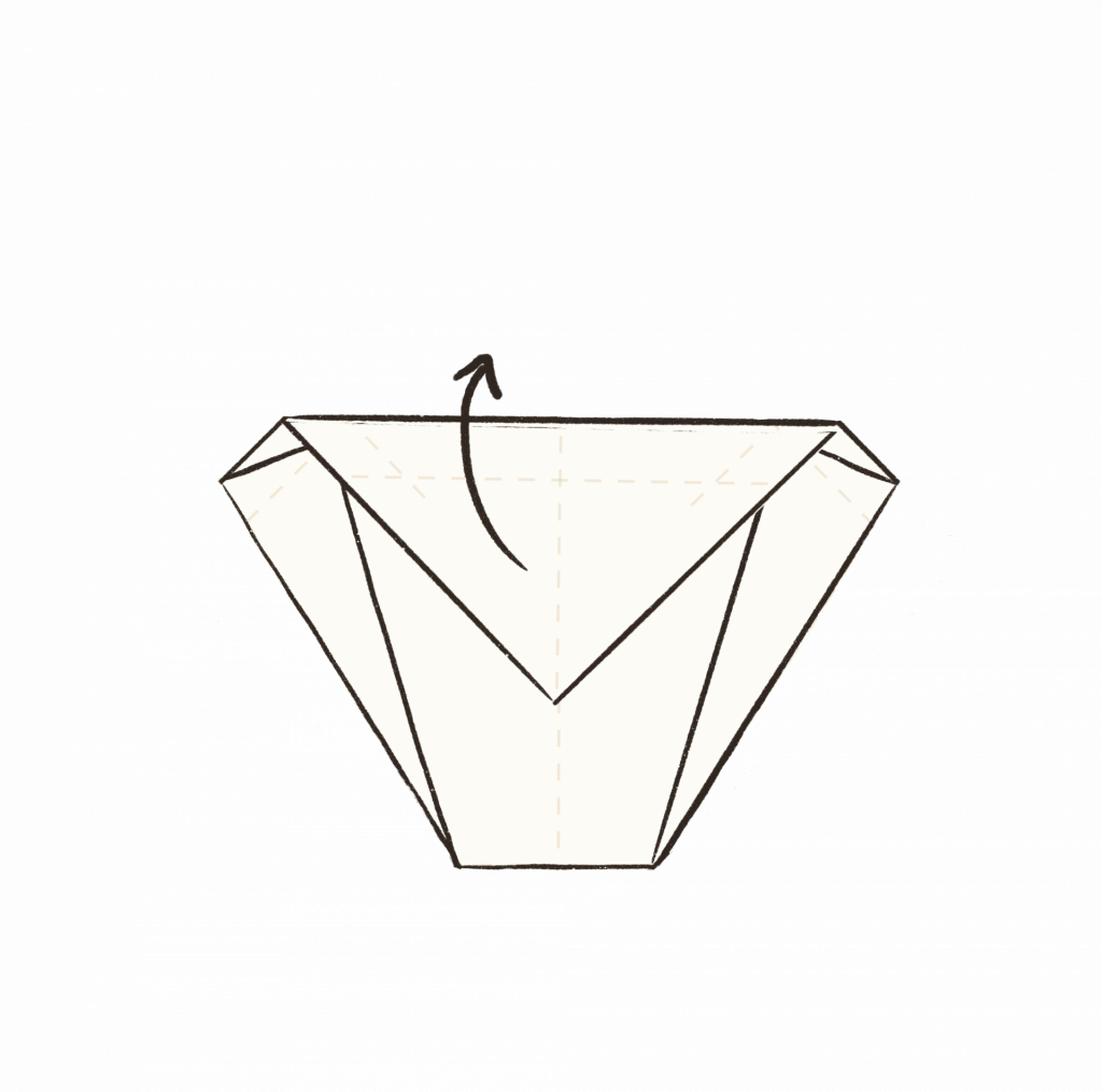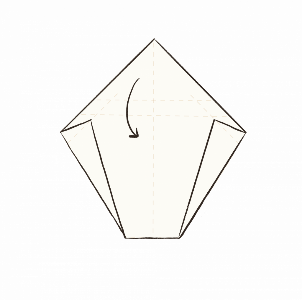 4. Falte die obere Ecke entlang der unteren Falzlinie nach unten.